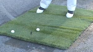 The finest stand alone roll up golf mat. Made from one of the thickest specially made synthetic turfs, this unrolls in seconds for a great practice session. Comes with pre drilled rubber tee holes and also free 3" rubber tees. No more surprises at the range!